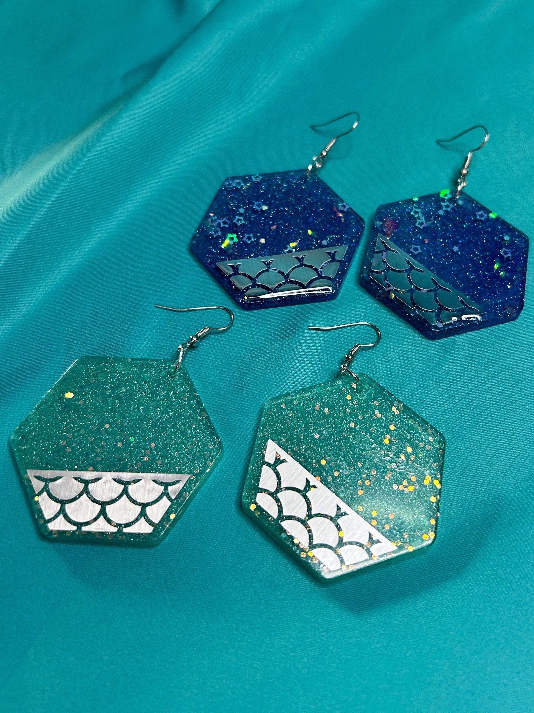 Mermaid Earrings | Choose Your Color | Teal or Blue