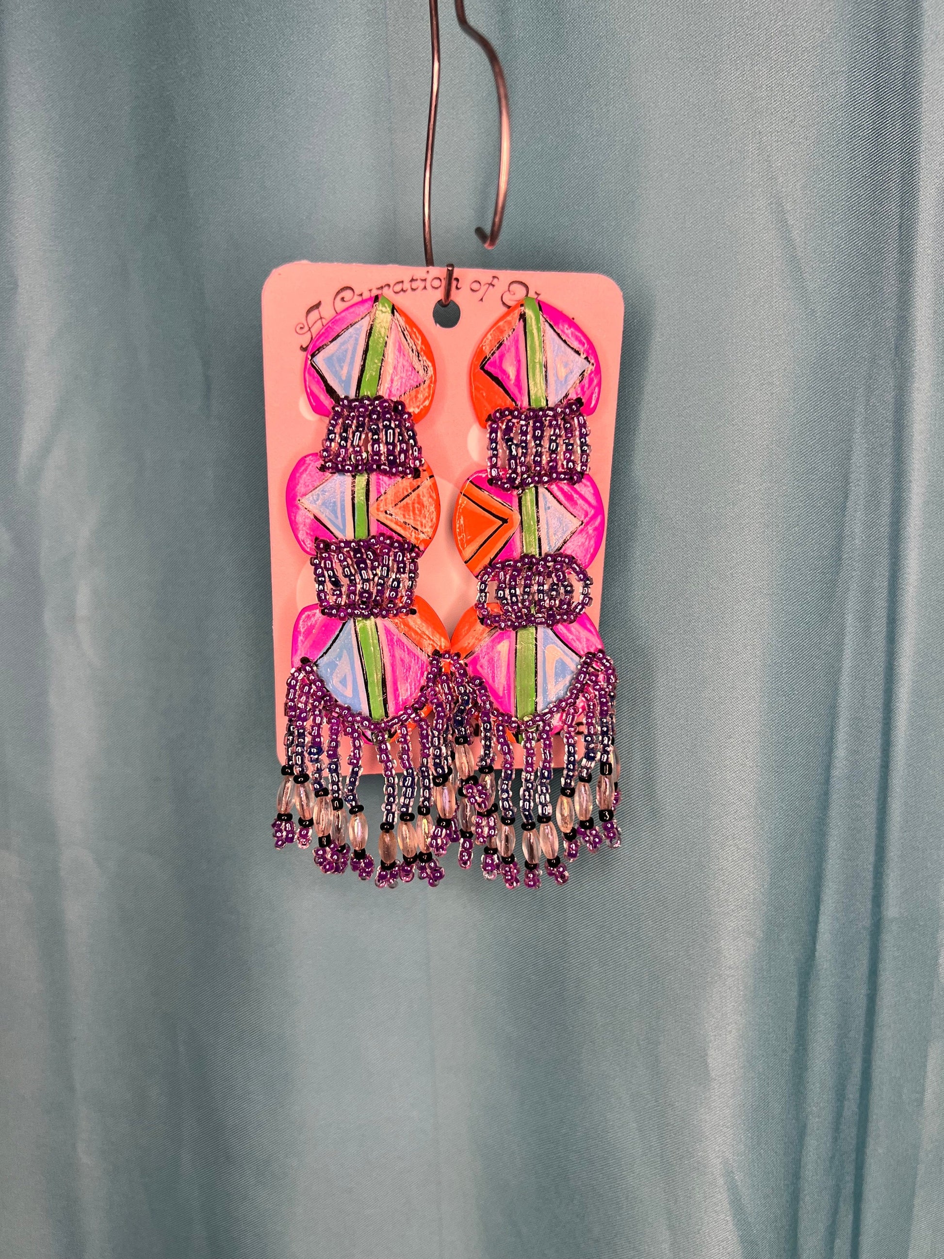 Paper and beaded purple pink orange Drop earrings silver ear push backs post handmade