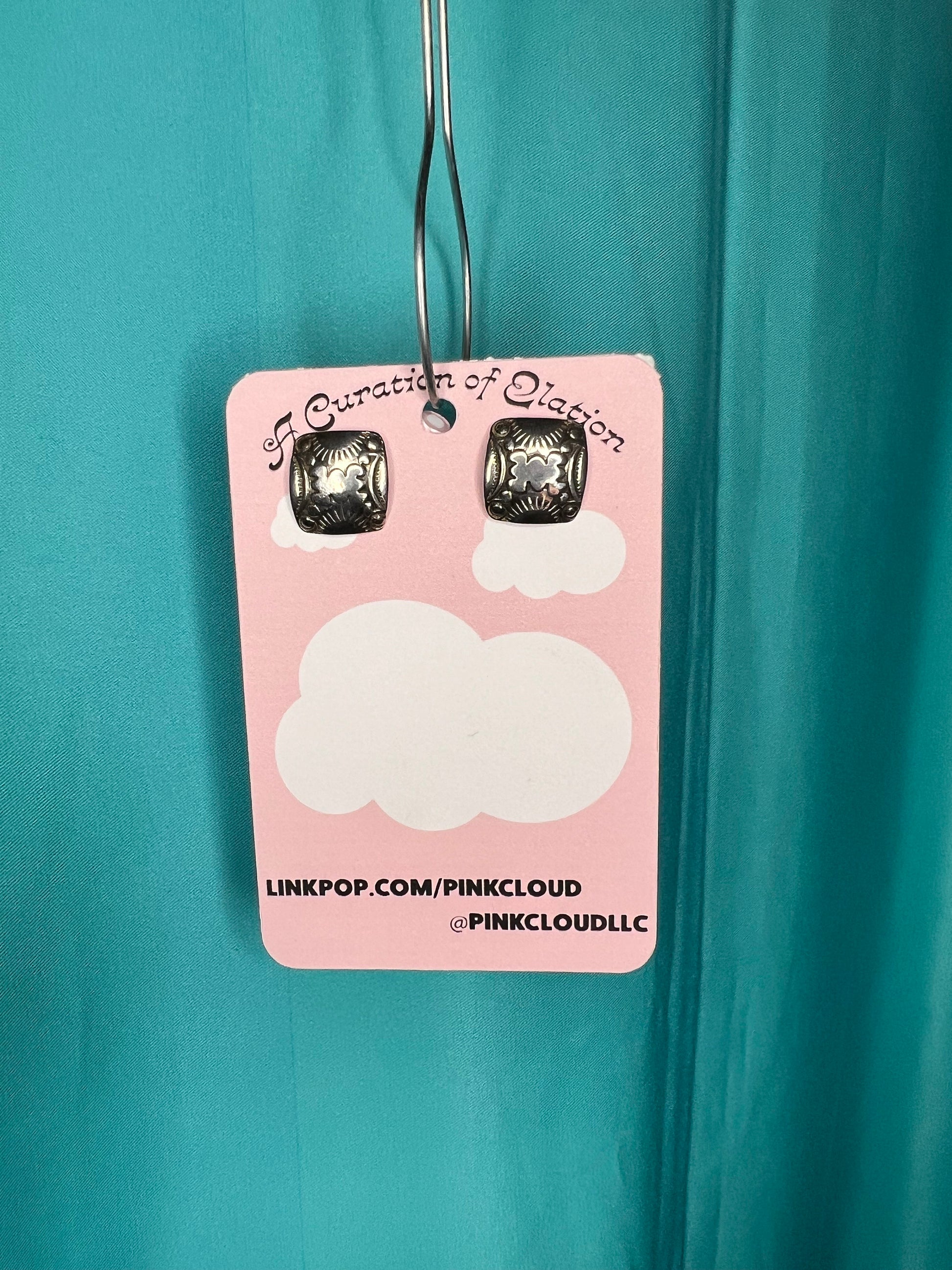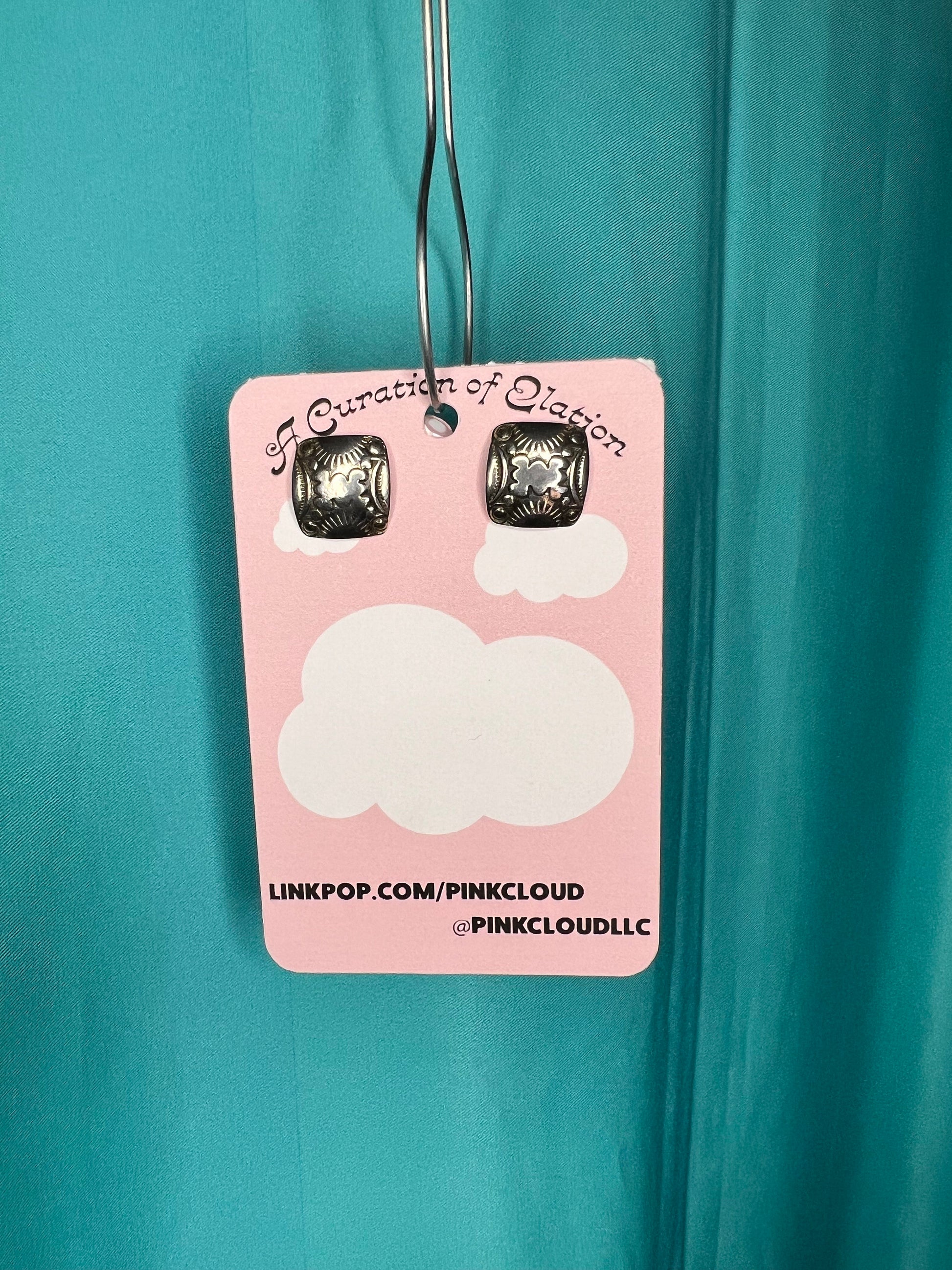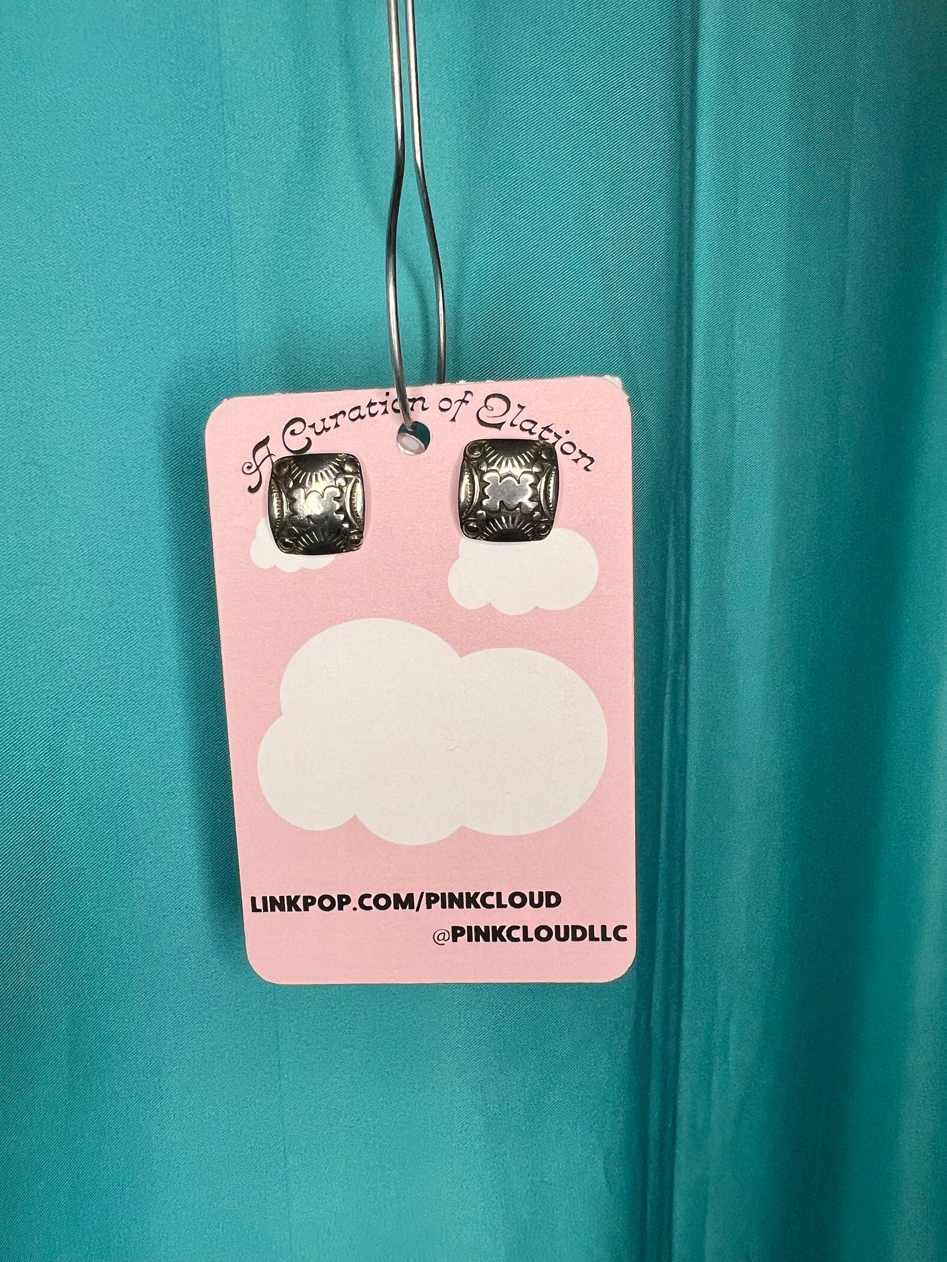 Stainless Steel Handmade Tribal Mexican square stud earrings with etched pattern