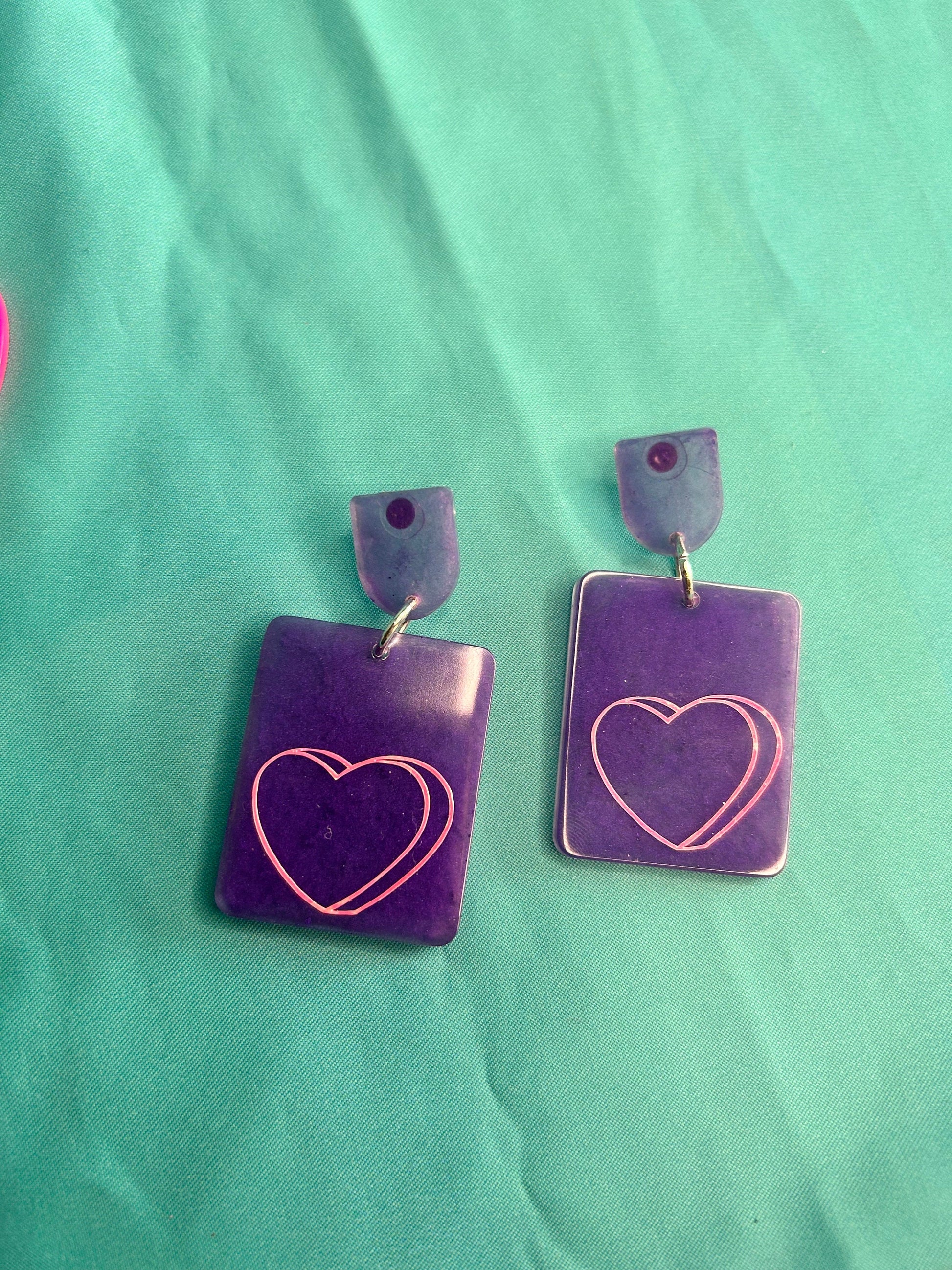 Make a statement with these unique, one-of-a-kind handmade dangle earrings. The hearts add a glamorous glittery touch to any look, while the 3 inch length ensures you stand out in any crowd. Sparkle and shine with these beautiful and fun statement makers.