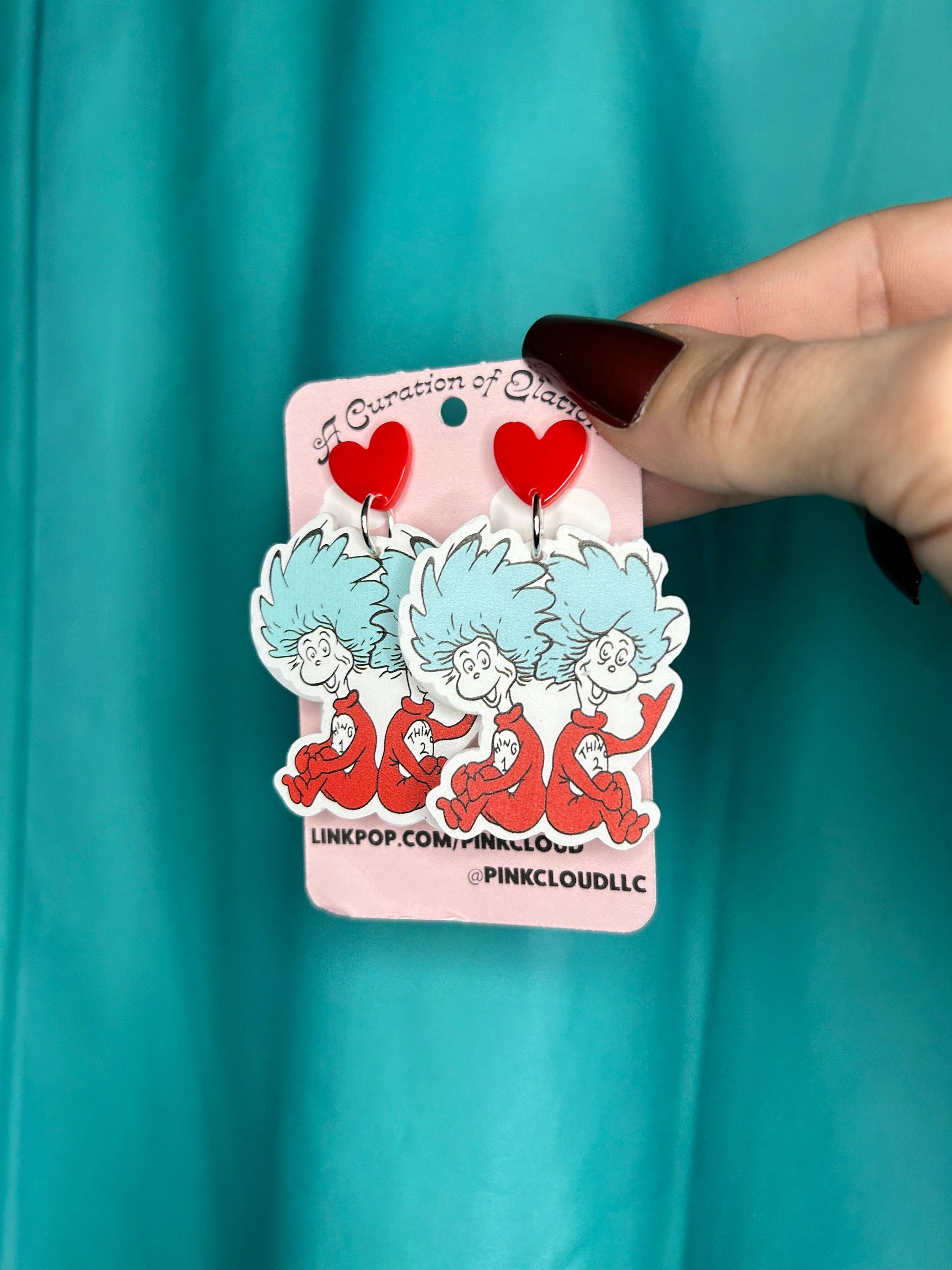Thing 1 & 2 Acrylic Dangle Earrings: Dr. Seuss Handmade Statement Jewelry